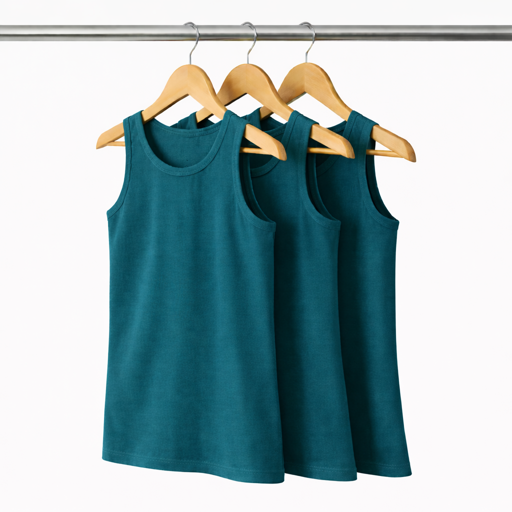 Kit 3 Regatas Azul Petróleo Masculina Algodão Premium