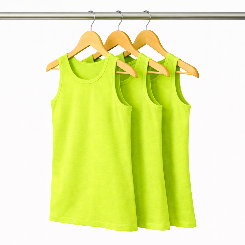 Kit com 3 Regatas Verde Limão Masculina  Algodão Premium